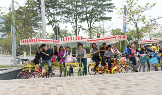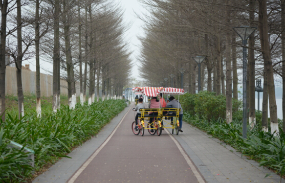 品嘗美食后,前往海珠區(qū)生物島,開始自行車環(huán)島之旅。大家各自租個自行車,騎上環(huán)島游玩,既能鍛煉身體,又能觀賞到美麗的江景,真是再愜意不過!大家覺得塵世的一切紛擾都遠(yuǎn)離而去,只剩下耳畔的風(fēng)和眼前的江水。在歡樂的氣氛中,我們結(jié)束了此次愉快的活動。