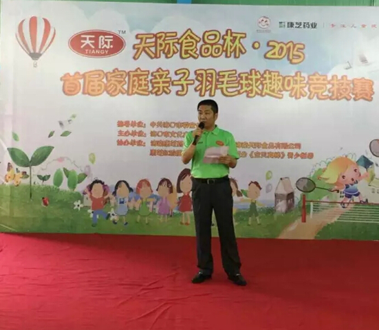 2015年6月14日上午10點,由中共??谑形麄鞑恐笇В?谑形幕瘡V電出版體育局主辦,海南康芝藥業(yè)股份有限公司、海南天際食品有限公司、康芝紅臉蛋基金和??趶V播電視臺《寶貝真棒》青少欄目共同協(xié)辦的“天際食品杯?2015首屆家庭親子羽毛球趣味競技賽”頒獎典禮在海口順健源羽毛球館盛大舉行。