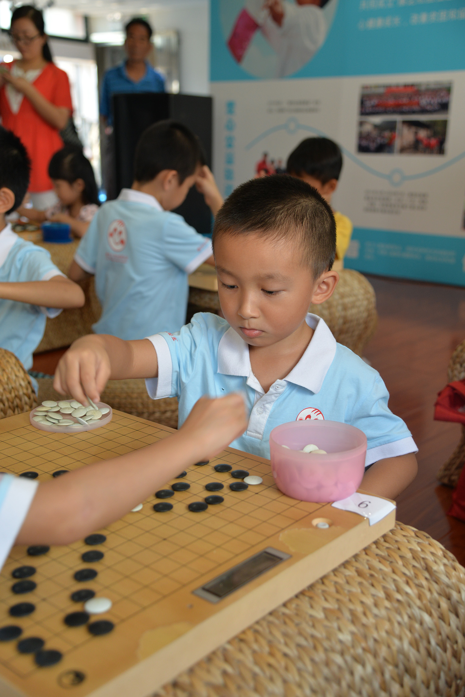 歷經三周特色圍棋啟蒙教學,7月30日,康芝紅臉蛋基金少兒圍棋特訓營在廣州圓滿收官。48名小學員在家長的陪同下參加了當天的畢業(yè)典禮,并通過期末圍棋對弈積分賽檢驗這三周的學習成果??抵ニ帢I(yè)品牌管理部總監(jiān)方康莉女士,廣東東湖棋院運營部主任周智滔先生、圍棋教學部主任甘穎斌先生、競賽部主任黃謹瑜先生等蒞臨現(xiàn)場。