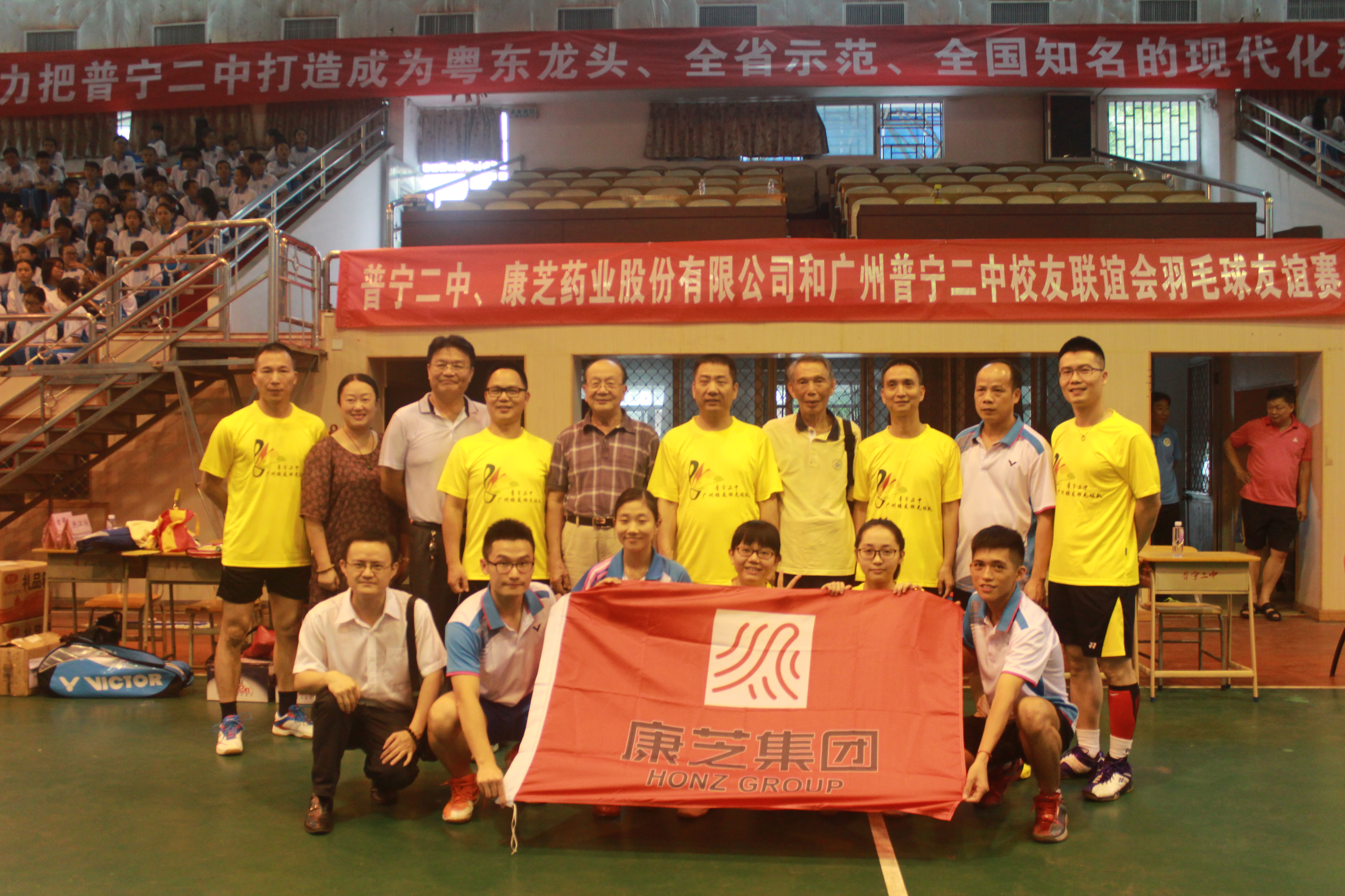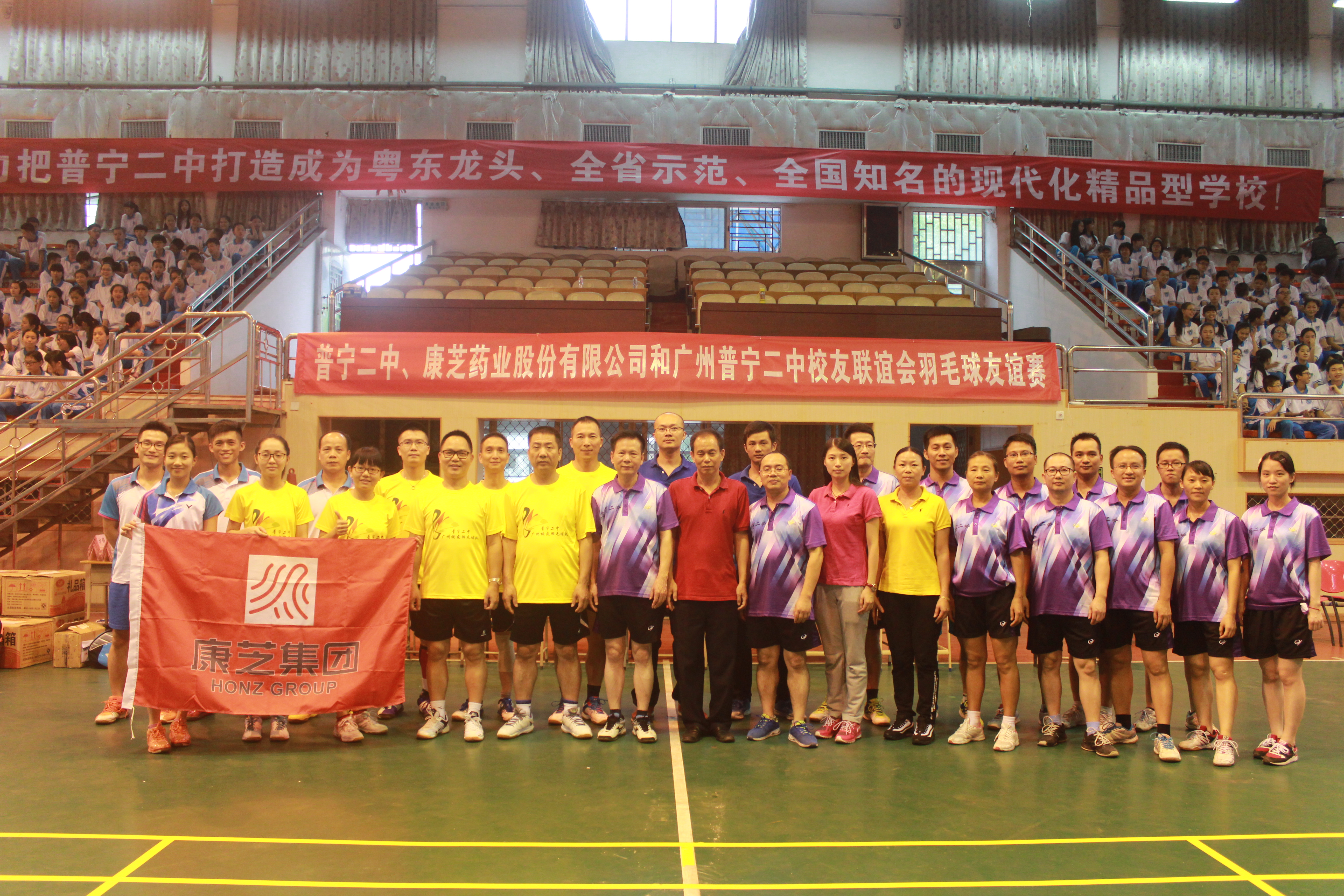 10月8日下午,康芝藥業(yè)董事長洪江游先生帶領(lǐng)康芝羽毛球俱樂部成員,風(fēng)塵仆仆來到其母校普寧二中參加羽毛球友誼賽。當(dāng)天,以洪江游董事長為首的康芝羽毛球俱樂部,和普寧二中廣州校友聯(lián)誼會秘書長羅勇強(qiáng)先生等校友代表組成了聯(lián)合代表隊(duì),與普寧二中副校長陳偉旭先生率領(lǐng)的二中代表隊(duì)進(jìn)行了一場精彩對決。