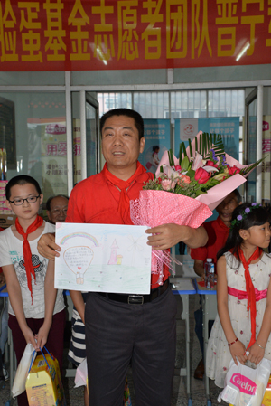 在捐贈(zèng)儀式上,洪江游先生代表康芝紅臉蛋基金向軍屯小學(xué)贈(zèng)送“愛(ài)心共建學(xué)?!迸曝?,并為孩子們發(fā)放愛(ài)心大禮包。孩子們則向洪董事長(zhǎng)獻(xiàn)上了鮮花和自己精心繪畫的美術(shù)作品。