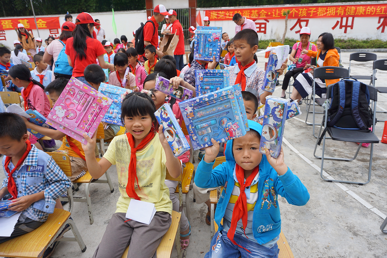 愛心活動(dòng)在肇慶高要區(qū)水南鎮(zhèn)六聯(lián)小學(xué)舉行,康芝寶寶們此次“手牽手獻(xiàn)愛心”的對(duì)象,是來自水南中心小學(xué)下屬對(duì)口小學(xué)和六聯(lián)小學(xué)的孩子們。