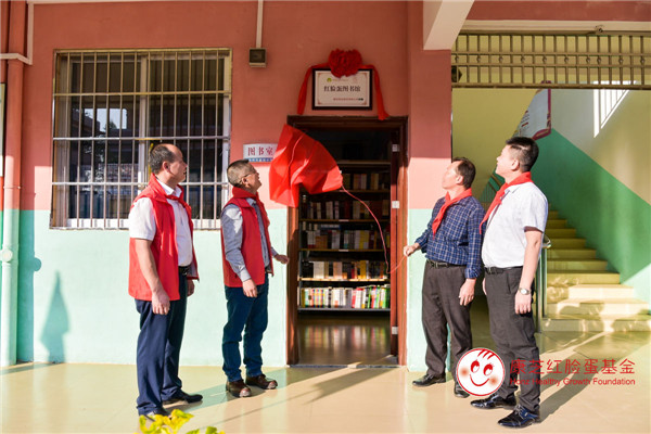 △各到場領(lǐng)導(dǎo)及嘉賓為紅臉蛋圖書館揭幕