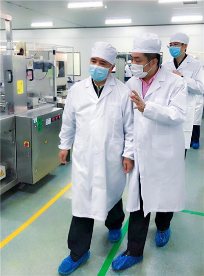 劉賜貴書記一行考察和參觀了康芝藥業(yè)海南總廠口罩生產(chǎn)線和藥品生產(chǎn)車間,來到一線員工身邊,關(guān)心工人們的返崗時間和個人籍貫等情況,對企業(yè)防疫抗疫工作作出了重要指示。同時,劉賜貴書記指出:“通過現(xiàn)場調(diào)研考察可以看到,康芝藥業(yè)是一家非常不錯的企業(yè),生機(jī)勃勃、設(shè)備先進(jìn),對本次疫情做出了正確的預(yù)判,及時迅速備產(chǎn)投產(chǎn),值得表揚(yáng)!”