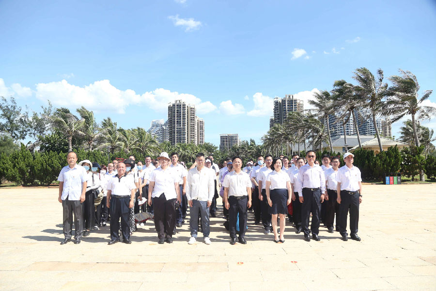 在海南臨高角解放公園,來自康芝藥業(yè)黨支部攜手華夏銀行海口分行黨委的全體黨員干部、預(yù)備黨員、入黨積極分子在革命烈士紀(jì)念碑下敬獻(xiàn)花束,對(duì)烈士表示崇高敬意。