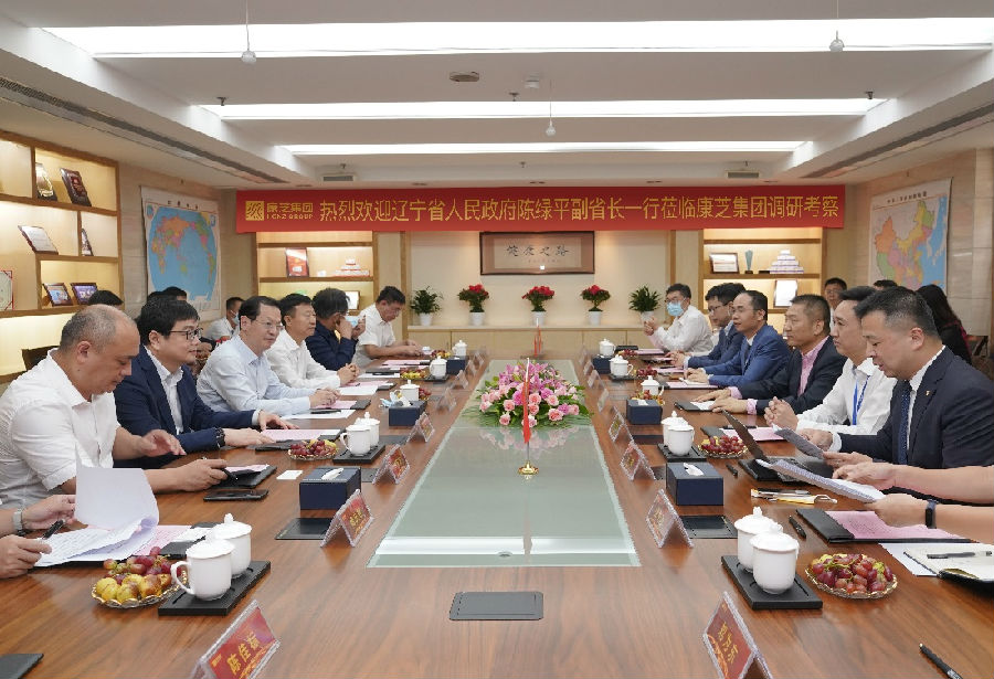 隨后,調(diào)研團一行移步會議中心進行座談交流。洪江游董事長首先致歡迎辭,對陳綠平副省長一行到來給予了熱烈歡迎。康芝集團代表向與會的遼寧省、沈陽市相關(guān)領導匯報了沈陽康芝項目的發(fā)展情況和規(guī)劃方案,獲得了調(diào)研團的一致認可與支持。