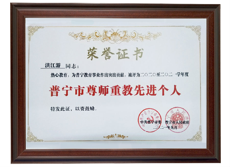 近日,中共普寧市委、普寧市人民政府發(fā)布了關(guān)于表彰2020-2021學(xué)年度普寧市優(yōu)秀教育工作者及尊師重教個(gè)人、先進(jìn)單位等的通報(bào)。知名潮商、愛心企業(yè)家、康芝藥業(yè)董事長洪江游先生被授予“普寧市尊師重教先進(jìn)個(gè)人”光榮稱號(hào)。