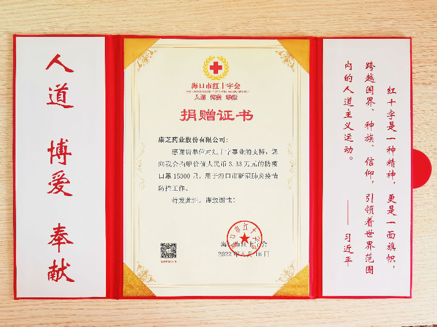 作為一家制藥企業(yè),康芝藥業(yè)長(zhǎng)期積極關(guān)注公益事業(yè),踐行“誠(chéng)善行藥,福澤人類”的企業(yè)宗旨,積極回饋社會(huì),履行企業(yè)社會(huì)責(zé)任。自疫情發(fā)生以來,康芝藥業(yè)勇于擔(dān)當(dāng),作為海南首條醫(yī)用口罩生產(chǎn)線的生產(chǎn)企業(yè),時(shí)刻嚴(yán)把防疫物資產(chǎn)品質(zhì)量關(guān),全力保障疫情防控所需,同時(shí)也積極承擔(dān)上市藥企的社會(huì)責(zé)任,支援社會(huì)各界做好疫情防控工作。