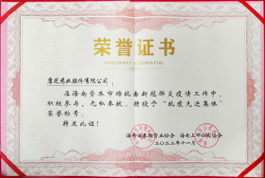 近日,在海南證監(jiān)局的指導(dǎo)下,海南證券期貨業(yè)協(xié)會、海南上市公司協(xié)會在??谡匍_海南資本市場抗擊新冠肺炎疫情先進(jìn)事跡報(bào)告會,表彰抗疫先進(jìn)個(gè)人和先進(jìn)集體。會上,康芝藥業(yè)榮獲“抗疫先進(jìn)集體”稱號。