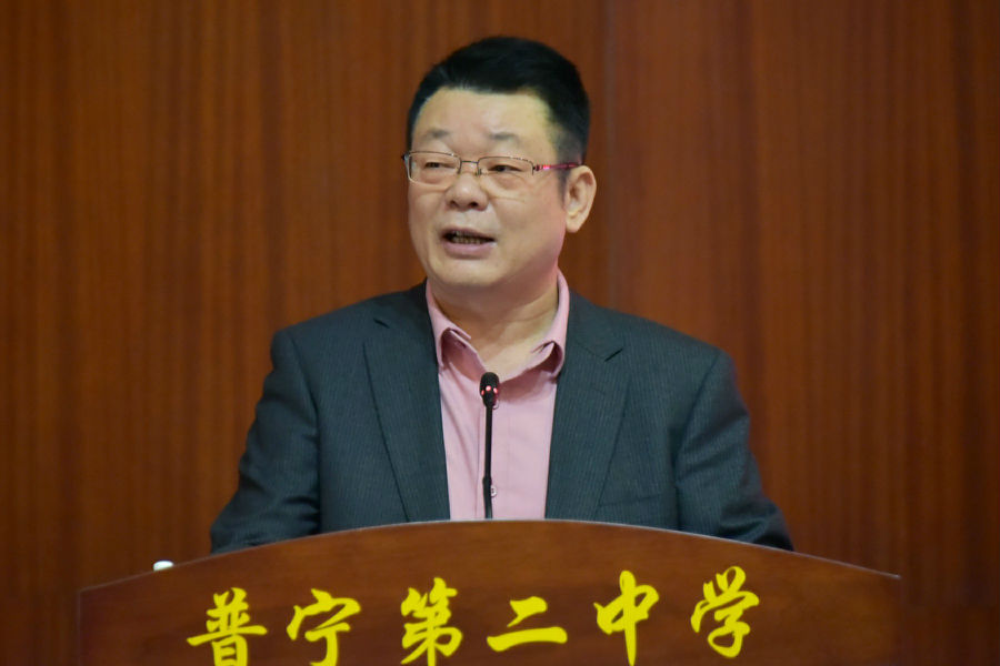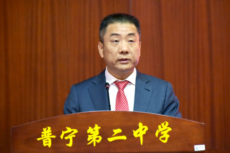 巫樹林在會(huì)上講話,他說(shuō),近年來(lái),普寧市深入貫徹落實(shí)習(xí)近平總書記關(guān)于教育的重要論述和重要指示精神,把教育放在優(yōu)先發(fā)展的戰(zhàn)略位置,教育事業(yè)取得長(zhǎng)足發(fā)展,形成了“黨政重教、社會(huì)助教、教師樂(lè)教、全民興教”的良好局面,這離不開廣大教育工作者的共同努力,也離不開一直關(guān)心家鄉(xiāng)教育事業(yè)發(fā)展的愛(ài)心企業(yè)家洪江游先生等社會(huì)各界的支持。他希望市教育部門貫徹落實(shí)好教育高質(zhì)量發(fā)展三年行動(dòng)計(jì)劃,努力辦好人民滿意的教育。普寧市第二中學(xué)要堅(jiān)決落實(shí)市委黃銳亮?xí)浱岢龅摹皹淞駱雍蜆?biāo)兵,起示范帶動(dòng)作用”指示精神,把學(xué)校辦成高質(zhì)量、現(xiàn)代化名校,廣大教育工作者要做到安教、樂(lè)教、勤教、善教,為普寧教育事業(yè)的高質(zhì)量發(fā)展奉獻(xiàn)自己的力量。希望同學(xué)們以夢(mèng)為馬,不負(fù)韶華,在求知、求真、求新的道路上努力拼搏、踔厲奮發(fā),常懷感恩之心,他日回報(bào)家鄉(xiāng)。同時(shí),希望廣大鄉(xiāng)賢、校友和社會(huì)各界熱心人士一如既往地關(guān)心、支持普寧的教育事業(yè),踴躍參與捐資助教活動(dòng),為造福桑梓、為普寧教育高質(zhì)量發(fā)展做出新的更大的貢獻(xiàn)!