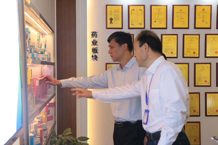 在高洪常總經理的帶領下,江西省贛州市副市長鄒治宇參觀了康芝藥業(yè)展廳,深入了解康芝藥業(yè)的發(fā)展歷程、明星產品以及研發(fā)實力等。