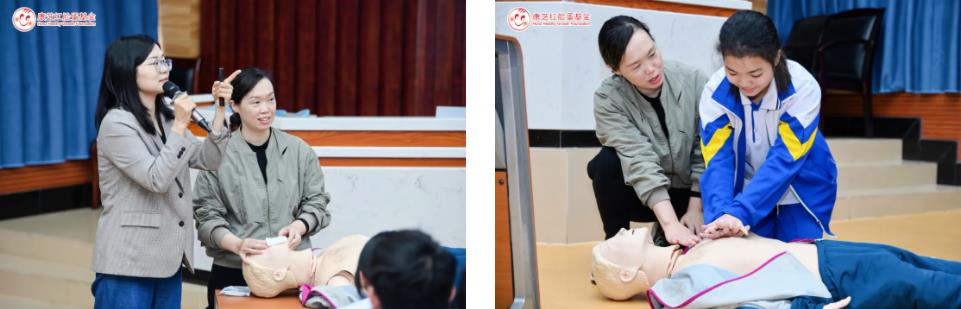 在海南省婦女兒童醫(yī)學(xué)中心副主任醫(yī)師張素麗等專家的現(xiàn)場(chǎng)專業(yè)指導(dǎo)下,學(xué)生們反復(fù)練習(xí)海姆立克急救法、胸外按壓、人工呼吸等關(guān)鍵動(dòng)作,切實(shí)掌握“救命技能”的核心要領(lǐng),增強(qiáng)他們?cè)谕话l(fā)事件中的自救互救能力。講座內(nèi)容既有科學(xué)深度,又富有趣味性,贏得了師生們的高度贊譽(yù)。