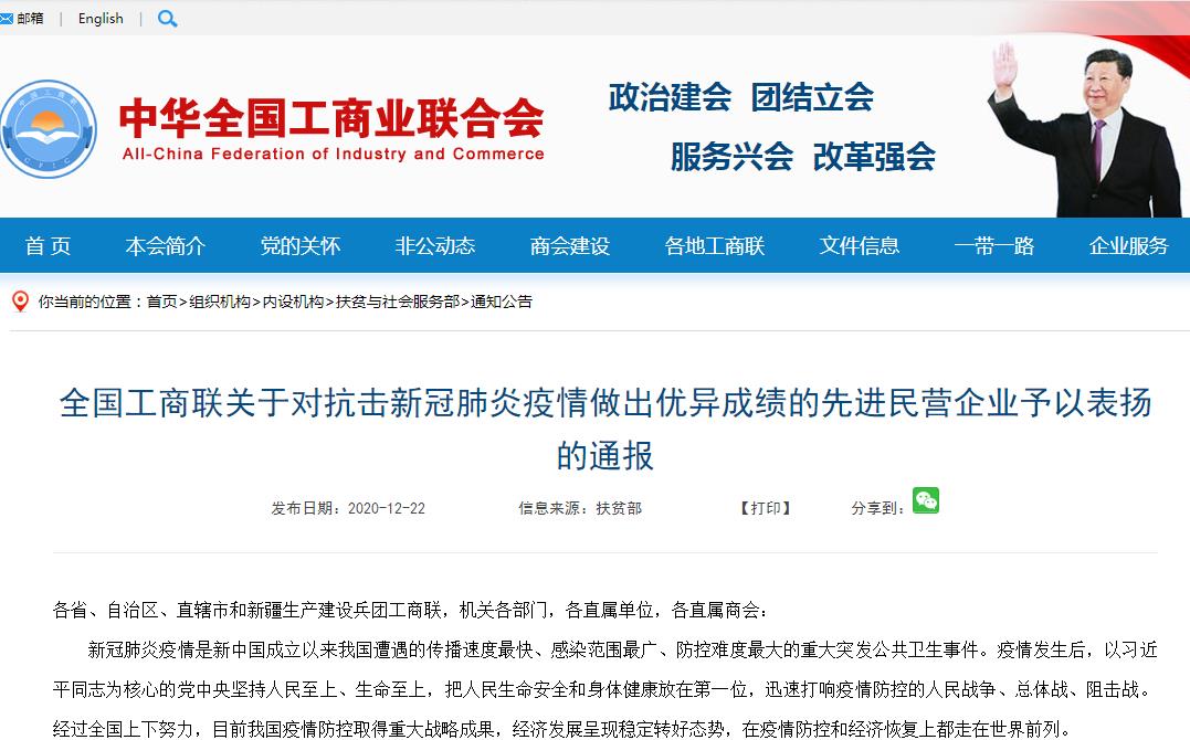 查看詳情本次獲評(píng)“抗擊新冠肺炎疫情先進(jìn)民營(yíng)企業(yè)”,是對(duì)康芝藥業(yè)企業(yè)社會(huì)責(zé)任實(shí)踐的高度認(rèn)可。未來,康芝藥業(yè)將始終堅(jiān)持以習(xí)近平新時(shí)代中國(guó)特色社會(huì)主義思想為指導(dǎo),繼續(xù)發(fā)揮上市藥企的優(yōu)勢(shì),積極配合祖國(guó)打贏這場(chǎng)疫情防控攻堅(jiān)戰(zhàn)!
