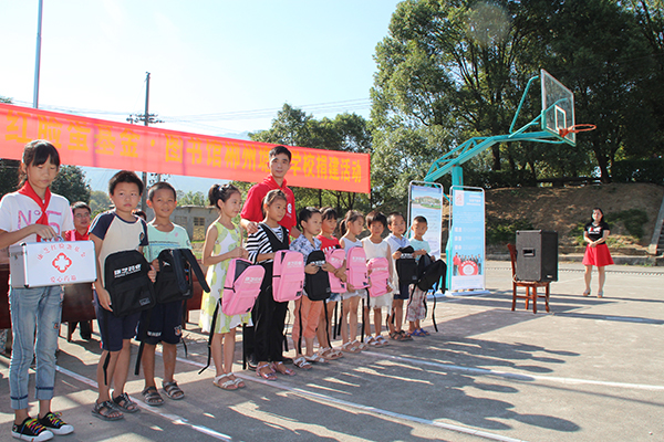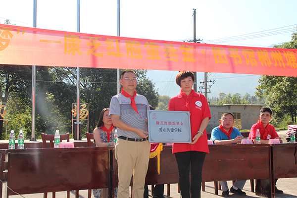 活動現(xiàn)場,陽光燦爛,孩子們的笑臉與陽光相映,閃耀著兒童獨有的天真明媚。志愿者們熱心公益能得到心靈上的滿足,公益力量也為山區(qū)學校提高辦學質(zhì)量提供條件,這是互惠的過程。正如康芝藥業(yè)華南大區(qū)經(jīng)理張春紅女士的致辭:“康芝紅臉蛋基金致力兒童慈善事業(yè),關(guān)愛貧困兒童成長,在提供多種形式援助的同時,也是在推動社會和諧發(fā)展?;疬€將持續(xù)性地為塘溪學校提供愛心關(guān)懷和援助,號召更多的愛心人士幫助孩子們健康快樂成長?!敝驹刚邆儙砹私虒W物資,改善孩子們的學習條件。隨后舉行了“愛心共建學校”牌匾贈送儀式和“紅臉蛋圖書館”揭幕禮,校長回贈錦旗答謝康芝善舉。