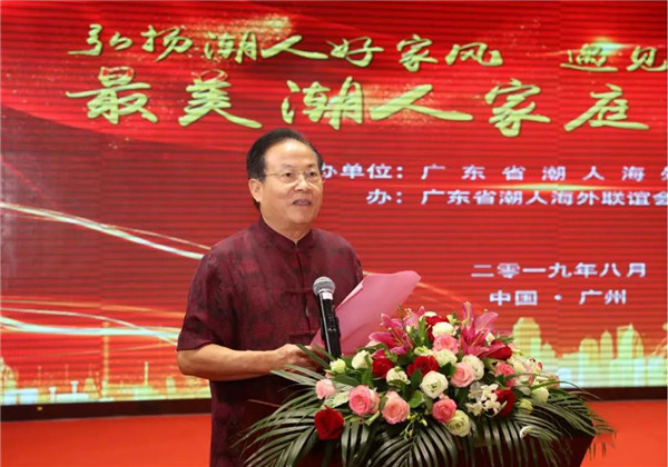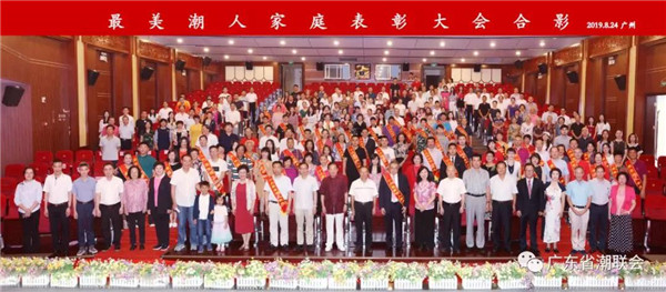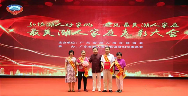 蔡東士會長在表彰大會上致辭。首先,他對獲獎家庭表示熱烈祝賀。他說,我們隆重舉行廣東省潮人海外聯(lián)誼會“十大最美潮人家庭”和“最美潮人家庭”表彰大會,這是貫徹落實(shí)習(xí)近平總書記關(guān)于重視家庭家風(fēng)建設(shè)有關(guān)論述的重要舉措。省潮聯(lián)自成立以來一直十分重視宣傳中華優(yōu)秀傳統(tǒng)文化,弘揚(yáng)潮汕地區(qū)優(yōu)良家風(fēng)。今年是新中國成立七十周年,70年來所取得的輝煌成就令人鼓舞,正因?yàn)橛凶鎳姆睒s富強(qiáng),才有我們的幸福生活。我們舉辦這次表彰活動,就是希望弘揚(yáng)家國情懷,發(fā)揮榜樣的力量,凝心聚力,以一帶十,以十帶千,引導(dǎo)更多潮籍家庭積極踐行社會主義核心價值觀,傳承中華民族的好家風(fēng),樹立文明家庭榜樣,傳遞“好家庭、好家教、好家風(fēng)”正能量,為實(shí)現(xiàn)中華民族偉大復(fù)興中國夢做出貢獻(xiàn),共同創(chuàng)造更加幸福美好的明天。