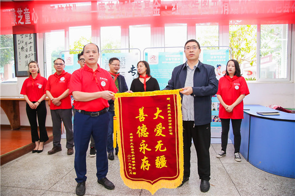 為鼓勵(lì)孩子們多讀書、讀好書,龍殿康先生向花水灣小學(xué)校長(zhǎng)何平贈(zèng)送了“愛心共建學(xué)?!迸曝?。接著,花水灣鎮(zhèn)學(xué)校校長(zhǎng)幸貴明代表學(xué)校給康芝藥業(yè)贈(zèng)送了“大愛無疆 善德永存”的錦旗。