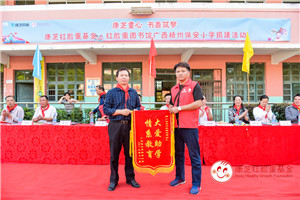 為表謝意,保安小學(xué)代表們給康芝藥業(yè)回贈了自己親手所作的手工作品,保安小學(xué)校長將兩面寫有“捐資助學(xué) 奉獻(xiàn)愛心”、“大愛助學(xué)情系教育”的錦旗分別回贈給康芝藥業(yè)及康芝藥業(yè)梧州代理商團(tuán)隊(duì)。