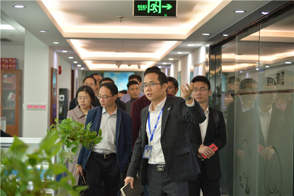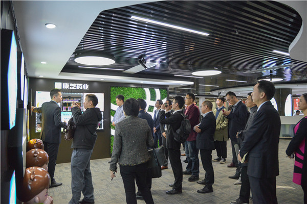 △康芝藥業(yè)副總裁兼董秘林德新帶領(lǐng)投資者參觀公司