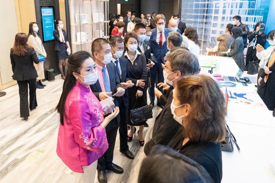 聯(lián)合國駐華機(jī)構(gòu)代表佩戴康芝藥業(yè)UN75周年定制口罩,列隊(duì)歡迎各位來賓