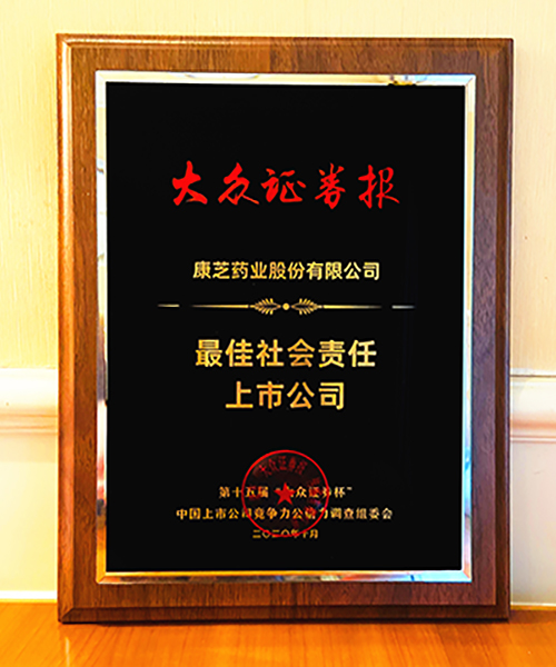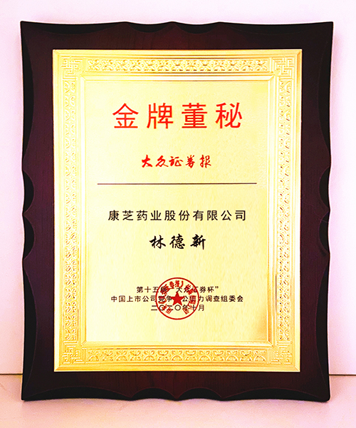 疫情期間,康芝藥業(yè)積極承擔(dān)社會責(zé)任,整合生產(chǎn)和科研優(yōu)勢資源全面助力疫情“阻擊戰(zhàn)”,獲得廣大中小投資者和專家評審委員會的一致好評,被評為“最佳社會責(zé)任上市公司”,董事長洪江游先生榮獲“最具影響力上市公司領(lǐng)袖獎”,副總裁、董秘林德新先生獲“金牌董秘”榮譽(yù)稱號。