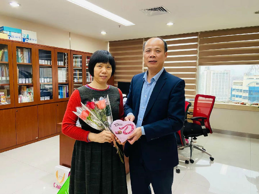 3月8日一早,由廣州區(qū)工會(huì)的龍主席帶頭,康芝帥哥們?cè)缭绲氐群蛟诠倦娞菘冢蛩信酝芦I(xiàn)上鮮花和心型巧克力,表達(dá)對(duì)康芝女神們的問候和祝福。禮輕情意重,一朵朵玫瑰的發(fā)放,讓大家深切地感受到了康芝大家庭的關(guān)懷和溫情。