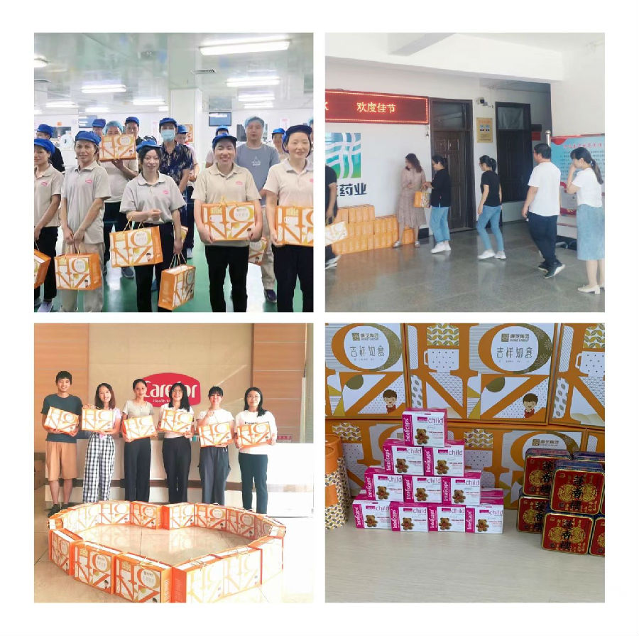 中山愛護(hù)和河北康芝也紛紛給員工們送上親手包裝的禮品,現(xiàn)場的禮品被暖心的同事擺放成愛心形狀,在這種富有愛意的氛圍中,能提前跟小伙伴們體會中秋熱鬧的氣氛,又是另一番滋味!