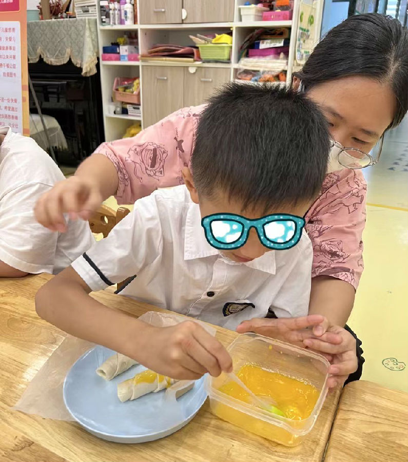 在烘焙過程中,志愿者生動形象地給孩子們分享生活的小常識,讓可愛的小天使在鍛煉動手能力的時候,還能感受到親力親為的樂趣,激發(fā)他們的想象力,活躍大腦思維。