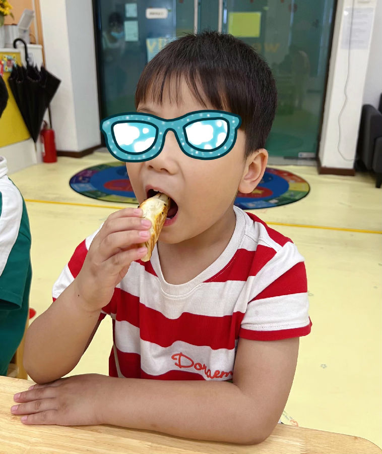 在志愿者們的耐心引導(dǎo)下,20名自閉癥孩子都完成了香腸面包的制作,頓時香氣四溢,孩子們?nèi)滩蛔‘?dāng)場分享了起來?;顒拥淖詈?,志愿者們還協(xié)助孩子們對香腸面包進(jìn)行包裝,讓孩子們可以把面包帶回家,與家人們分享他們的勞動成果。