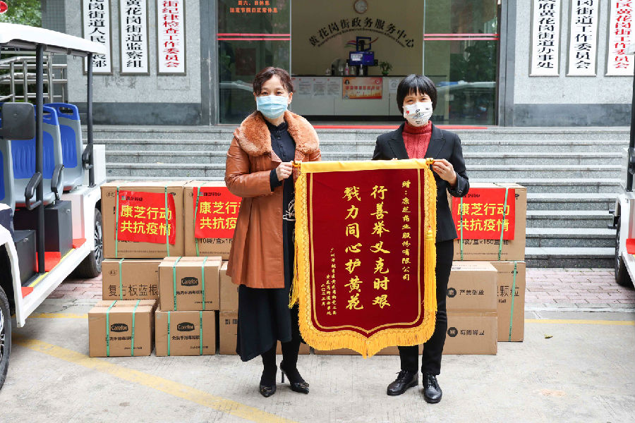 12月5日,副董事長(zhǎng)洪麗萍代表康芝藥業(yè)及旗下子公司愛(ài)護(hù)向廣州市越秀區(qū)黃花崗街黨群服務(wù)中心捐贈(zèng)一批康芝防疫愛(ài)心包,包括一次性醫(yī)用防護(hù)口罩、免洗手消毒凝膠、感冒清熱顆粒、復(fù)方板藍(lán)根顆粒、布洛芬顆粒等。