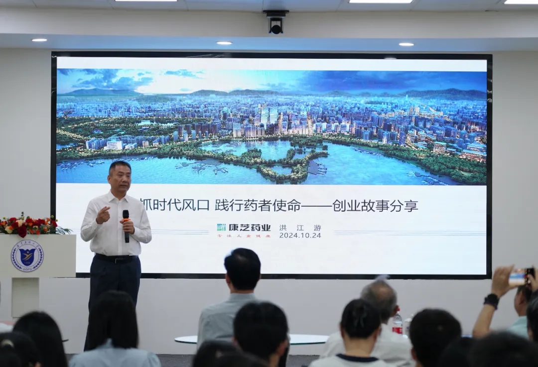 捐贈儀式后,“康芝多媒體廳”迎來首場活動——第十期創(chuàng)新創(chuàng)業(yè)下午茶主題講座。洪江游董事長作為分享嘉賓,以“緊抓時(shí)代風(fēng)口 踐行藥者使命”為主題,圍繞“我的大健康情結(jié)”“三十余載深耕大健康的創(chuàng)業(yè)之路”分享了自己堅(jiān)定大健康事業(yè)初心、錨定創(chuàng)業(yè)目標(biāo)、順應(yīng)時(shí)代浪潮、抓準(zhǔn)機(jī)遇積極投身于健康發(fā)展的創(chuàng)業(yè)故事。